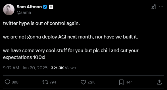 Sam Altman, CEO da OpenAI, fez um apelo aos seguidores e entusiastas de inteligência artificial para moderarem suas expectativas em relação à AGI (Inteligência Artificial Geral). Em um tweet recente, Altman ressaltou que, embora os avanços sejam promissores, a jornada para alcançar uma AGI totalmente funcional ainda enfrenta desafios significativos.